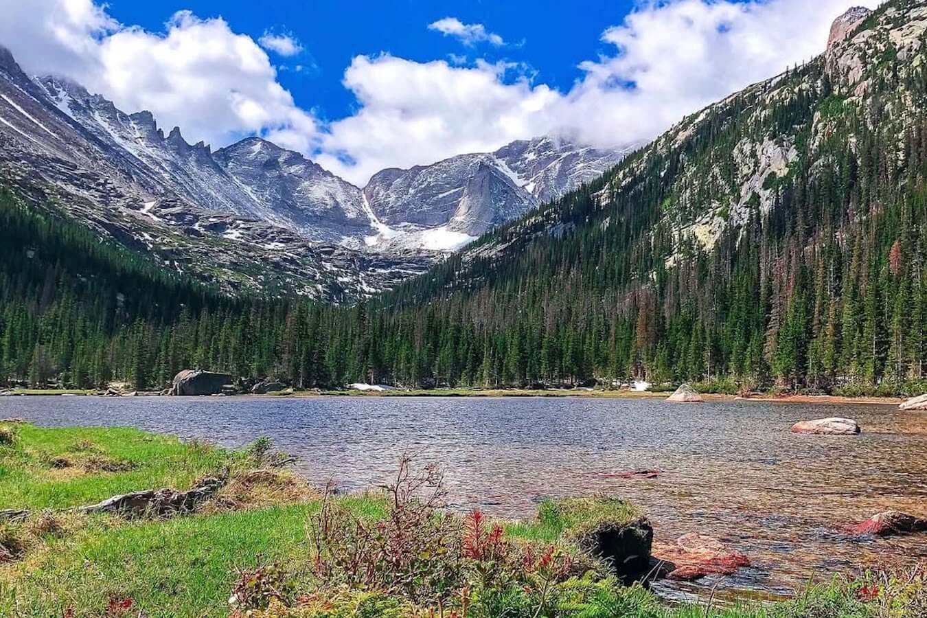 Jewel Lake, cradled at about 10,000 feet in Rocky Mountain National Park’s Glacier Gorge, is a serene alpine treasure framed by the dramatic Keyboard of the Winds and flanked by rugged peaks. Its boulder-strewn shores, dotted with vibrant wildflowers and subalpine firs, host pikas and trout, offering a tranquil retreat for hikers and photographers seeking solitude. Less frequented than nearby lakes, Jewel Lake’s shimmering waters and peaceful meadows invite quiet reflection and stunning vistas, making it a hidden gem for those exploring the gorge’s untamed beauty.